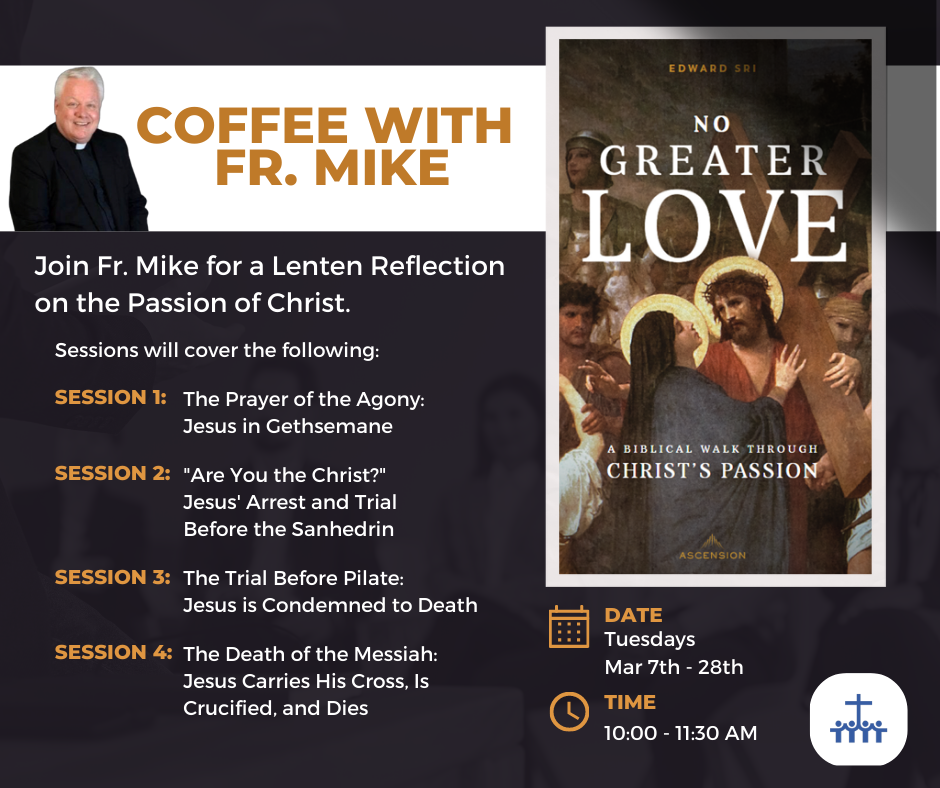 Back to All Events Coffee with Fr. Mike Tuesday, March 28, 2023 10:00 AM 11:30 AM Google Calendar ICS