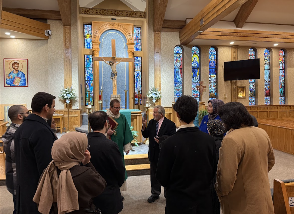 The Church of Saint Luke was pleased to welcome these Muslims attend our Mass. From a usual group of 6, the number of Muslim visitors to St. Luke’s grew to a near dozen, showing the good will that has been achieved by our parish’s Faithful Neighbors Ministry After the Mass, they were given a tour by Anthony Stevens-Arroyo and his family of our Church which helped our visiting group to “better understand and appreciate the theology, sacraments and signs at the church.”
